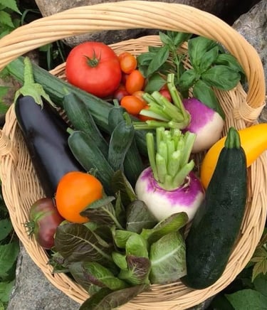 Chaque semaine entre juillet et la mi-octobre, nous livrons des paniers de légumes frais certifiés biologiques à Chicoutimi, Arvida, Tadoussac et Sainte-Rose-du-Nord. Les paniers sont la meilleure façon de soutenir votre fermier de famille et lui assurer une bonne planification de sa saison. C'est aussi une manière de découvrir de nouveaux légumes. Cuisiner nos légumes, c'est un choix pro-actif vers une santé optimale. L'abonnement aux paniers pour la saison 2026 ouvrira mi-février.