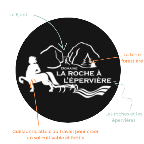 Une fois défrichées, les parcelles destinées aux cultures ressemblaient à des champs de roches. Au tout début, le travail pour les enlever était entièrement manuel. Aujourd'hui, de la machinerie est utilisée pour mieux répondre aux besoins. Tous ces efforts ont permis d'agrader le sol, c'est-à-dire de le rendre riche et fertile. C'est avec persévérance et détermination que Guillaume a rendu possible son rêve d'une ferme maraîchère. C'est maintenant avec fierté que nous vous partageons l'abondance de nos récoltes. Notre logo illustre différents éléments du démarrage de la ferme.